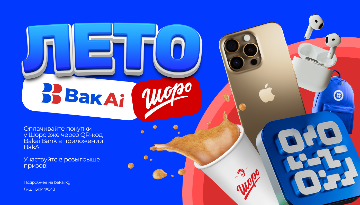 From July 1 to September 30, 2025, Bakai Bank invites you to take part in our summer campaign “Summer with BakAi & Shoro” — bright and rewarding. During the promotion, participants have the chance to win fantastic prizes — iPhone 16 Pro devices, AirPods, and exclusive Bakai Bank merchandise. To enter, simply buy your favorite Shoro drink and pay via the BakAi mobile app by scanning the Bakai Bank QR code at Shoro retail points.